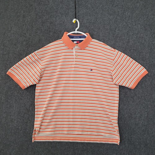 Tommy Hilfiger Polo Shirt Mens Extra Large Orange Striped Knit Logo Short Sleeve Ebay